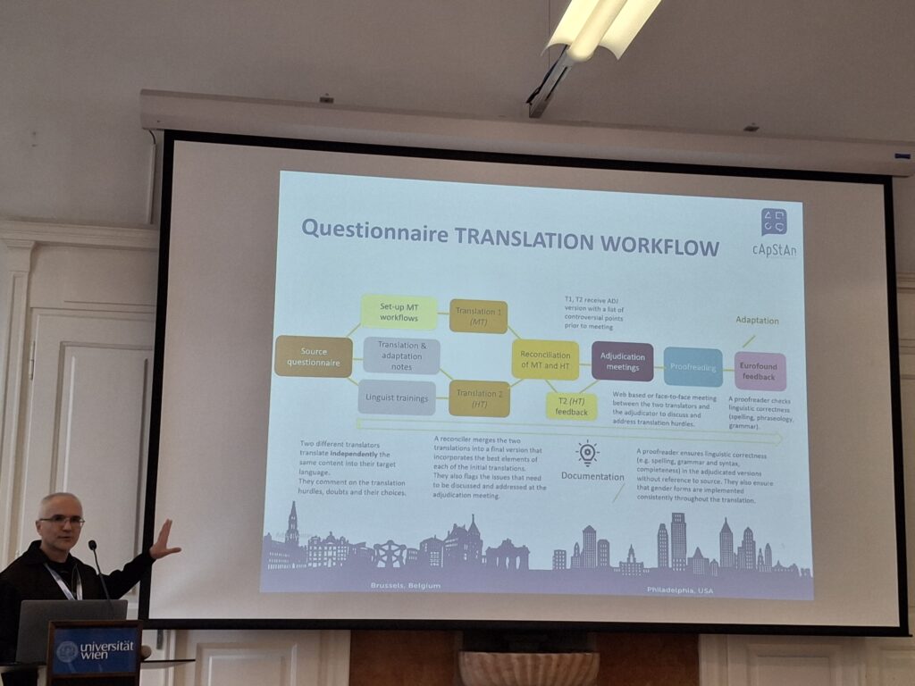 A highlight for cApStAn was the session Questionnaire Translation for Cultural Contexts, chaired by Dr Brita Dorer and co‑chaired by Musab, which brought together a diverse set of presentations addressing both methodological innovation and ongoing challenges in multilingual survey work. Alisú Schoua‑Glusberg (Research Support Services) examined the evolution of US Spanish terminology and showed how cognitive testing can help reassess translated terms in a shifting linguistic landscape. Patricia Goerman (U.S. Census Bureau) discussed how expert review methods—from traditional Question Appraisal Systems (QAS) to emerging generative‑AI‑supported approaches—can better guide translators and reviewers. Tobias Weber (GESIS), in collaboration with cApStAn, introduced efforts to build a multilingual repository of answer scales for the research community, while Ulrike Efu Nkong (GESIS) demonstrated how subtle machine‑generated translation errors can influence respondent behaviour. Dorothée Behr (GESIS) offered a lifecycle perspective in Questionnaire translations: From the cradle to the grave, and Brita Dorer presented work‑in‑progress comparing different translation approaches within a mixed‑methods design. Collectively, these contributions underscored the value of shared resources, methodological transparency, and collaborative innovation in improving comparability and reducing duplication of effort in large‑scale survey research.