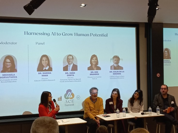 Dr Shafika Isaacs, the UNESCO Chief of Section for Technology & AI in Education, set out UNESCO’s twin AI competency frameworks for teachers and students, which both follow the same “understand – apply – create” progression. Progression conjures up growth, and the panel that followed discussed ways to harness AI to grow human potential: Dr Madikha Khan (Educate Ventures Research), Dr João Costa (European Agency for Special Needs and Inclusive Education, former Minister of Education of Portugal), Dr Kim Brandes (NOLAI) and Dr Colin de la Higuera (UNESCO Chair in Open Educational Resources) provided a vivid discussion, in which the ethical dimension was front-stage throughout.